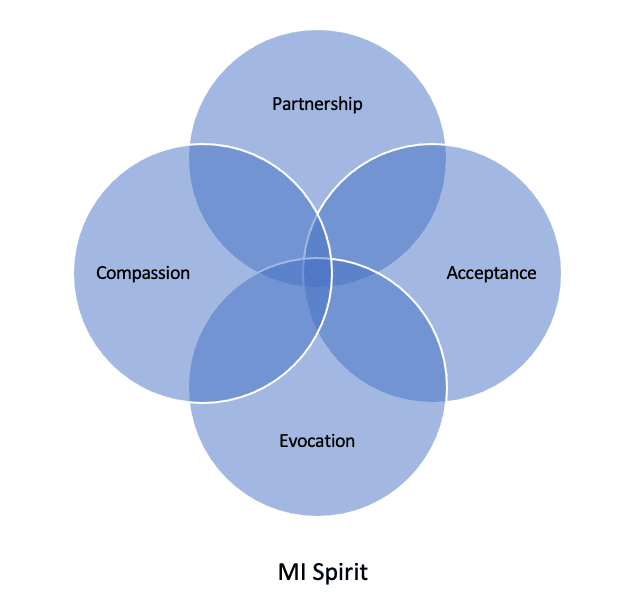 MI acknowledges the dignity and agency of each person. MI principles include: